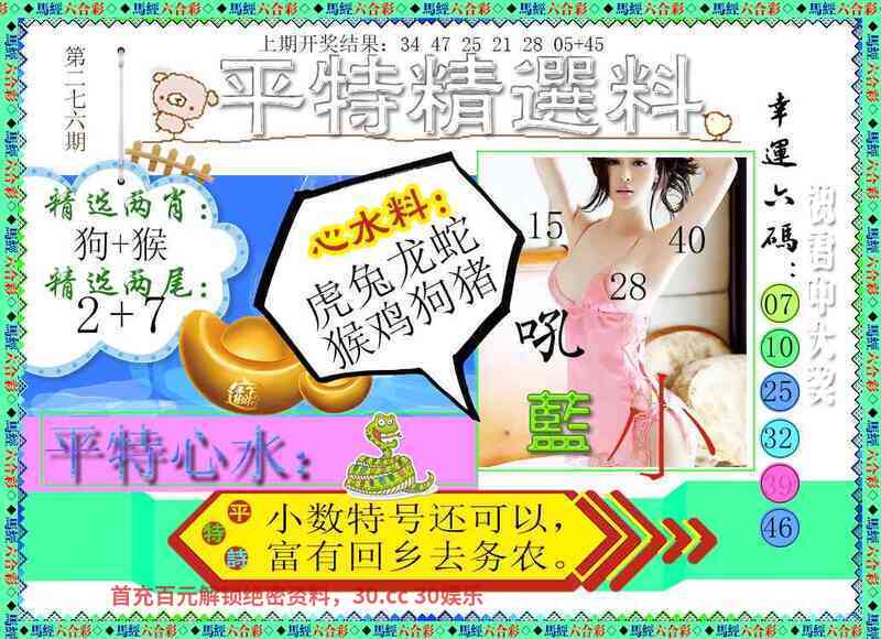 276期:七肖【鼠牛鸡龙羊虎猴】开鸡09中