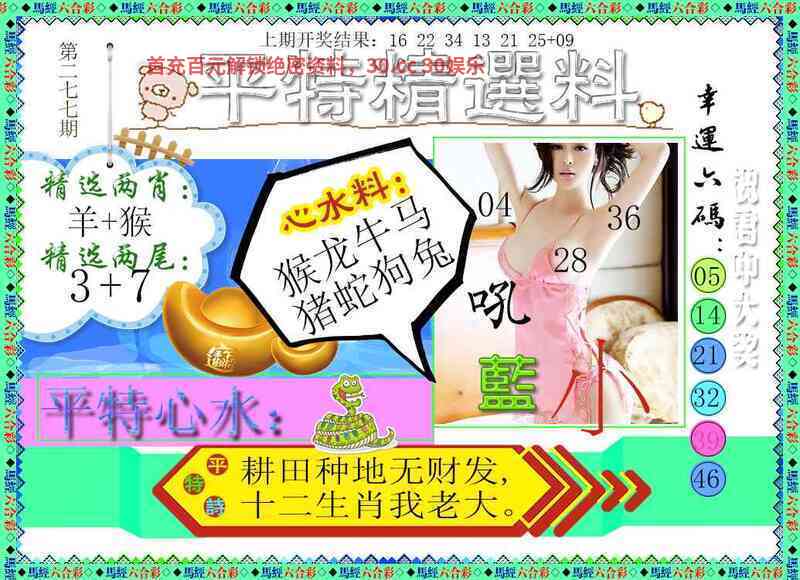 277期:七肖【狗马牛猪兔龙鸡】开虎16错